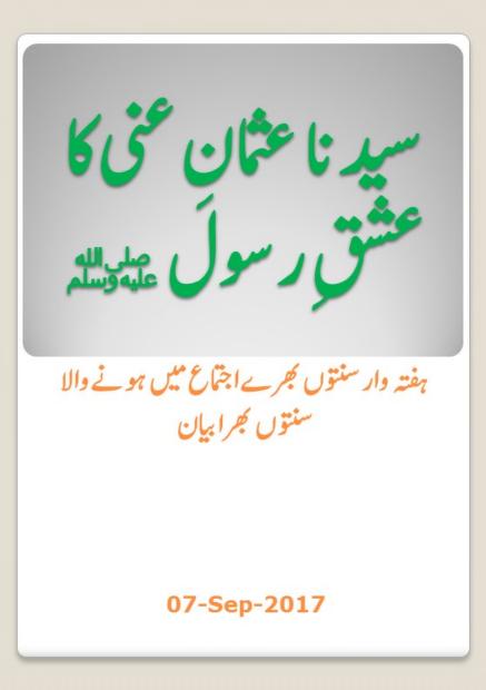 The third caliph, Ameer-ul-Mu`mineen Sayyiduna ‘Usman–e–Ghani. , is one of the personages who showed intense devotion to the Beloved Rasool .