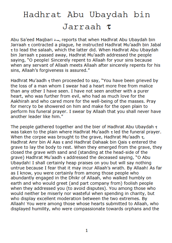 “Abu Ubaydah,” replied Hadhrat Umar τ. The people said, “Here he comes.” When Hadhrat Abu Ubaydah τ came, Hadhrat Umar descended from his animal and embraced him. The narration continues and will soon be quoted.