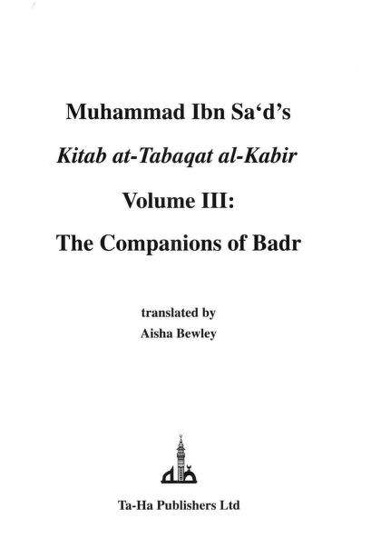 The Companions of Badr Kitab Al Tabaqat Al Kabir